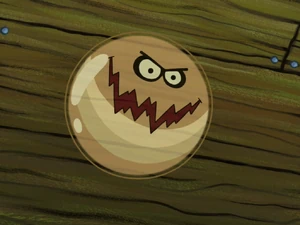 The Dirty Bubble is a sentient (possibly mutated), translucent, brown, dirt-covered bubble, hence his name. He has a pair of beige-colored eyes surrounded by black rings and a large mouth with jagged lips. He can float and fly in the air. He also has the ability to trap his enemies inside of his body & his weakness is that his enemy can pop him.