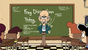 In the episode "Frog Wild", he reveals his true nature and discovers the frogs were stolen in Mrs. Johnson's classroom; however, Lincoln is the frog hero because of Lana's disagreement on dissecting frogs. He gives Lincoln detention.