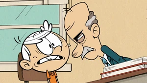 He appears again in "Pulp Friction", where it is revealed that he confiscate and keep any items from the students when they bring them to school. He also participates an Ace Savvy Comic book contest to meet Bill Buck; however, in the end, Lincoln and Clyde along with Huggins meet the creator of Ace Savvy.